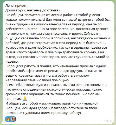 Она пришла с темой страха в разговорах, а продолжила уже с темой роста: как двигаться в карьере, брать больше и увереннее реализовываться в своей работе. Это важный момент, потому что вместе с устойчивостью у неё появилось место для амбиций, карьерного и денежного роста.